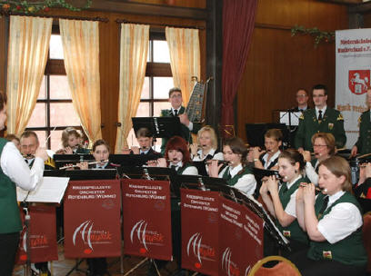 Über 60 Musiker profitierten nun wieder von der Kooperation der Kontaktstelle Musik Rotenburg-Bremervörde mit dem Marinemusikkorps Nordsee aus Wilhelmshaven. Der zweite Workshop mit den Profimusikern von der Waterkant war im vergangenen Jahr verabredet worden, als die "Blauen Jungs" zu Gast in Bothel waren. Jürgen Rudolph, Fachbereichsleiter Blasmusik der Kontaktstelle und Alfred Hoffmann, Ehrenvorsitzender der Kontaktstelle und Blasmusik-Fan bereiteten die Reise der Nachwuchsmusiker aus dem Landkreis an die Küste vor und so konnte Samstags-Morgen das Musikwochenende mit einem gemeinsamen Anspiel unter der Leitung von Kapitänleutnant Tobias Terhardt begonnen werden. Anschließend verteilten sich die Musiker auf die sieben Dozenten vom Marinemusikkorps zu Registerproben und Einzelunterricht. Neben dem Instrumentalunterricht erhielten die Teilnehmer viele Tipps zu Technik, Übungsverhalten und Ausrüstung von den hervorragend vorbereiteten Musikprofis des Marinemusikkorps. James-Bond-Filmmusik, Beach-Boys-Hits und weitere Stücke aus Rock, Pop, Musical- und Filmmusik erfüllten an diesem Wochenende den Standort der Nordsee-Musiker. Hauptbootsmann Matthias Paplowski, Beauftragter für Nachwuchsgewinnung des Marinemusikkorps, hatte vor Ort "alles klar" gemacht und Unterkunft und Übungsbetrieb mustergültig organisiert. "Auch wenn im Rahmen der Transformation der Bundeswehr die Zukunft des Militärmusikdienstes derzeit überdacht wird, möchten wir durch die Kooperation mit der Kontaktstelle Musik Rotenburg-Bremervörde, den Militärmusikdienst der Bundeswehr bekannter machen und hoffen, vielleicht sogar den einen oder anderen Laienmusiker als Musiker auf Zeit oder auf Dauer für uns zu gewinnen. Die Zusammenarbeit in dieser Form ist für uns bisher einmalig und wir haben in der Rotenburger Kontaktstelle Musik kompetente und verlässliche Partner gefunden. Gerne sind wir bereit, auch im nächsten Jahr wieder in den Landkreis Rotenburg zu kommen." so Paplowski. Dann hoffen die Beteiligten auch wieder auf ein gemeinsames Abschlusskonzert aller Workshop-Teilnehmern. "Was diesem Workshop fehlte, war ein Abschlusskonzert! Sonst war alles perfekt organisiert: die Auswahl der Musikstücke war exzellent, die Unterkunft und Verpflegung waren hervorragend, die Dozenten erstklassig!" war einhelliger Tenor der abschließenden Mannöverkritik der Musiker. Hoffmann und Rudolph freuten sich auch über die vielen Helfer, die den Workshop so erfolgreich werden ließen und bedankten sich nach der Rückkehr am Sonntagabend stellvertretend für alle bei Ulli Thoden, Busfahrer des Rotenburger Reiseunternehmens Kaiser, der die Musiker umsichtig und sicher nach Wilhelmshaven gefahren hatte und auch vor Ort stets mit helfender Hand zur Verfügung stand.