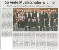 Die CDU/FDP-Kreistagsfraktion war zu Gast in der Kreismusikschule. Bei der Gelegenheit konnte Vorsitzender Matthias Müller auch über die Arbeit der Kontaktstelle Musik Rotenburg-Bremervörde berichten. Die Rotenburger Kreiszeitung berichtete über den Besuch am 09. Februar 2011.